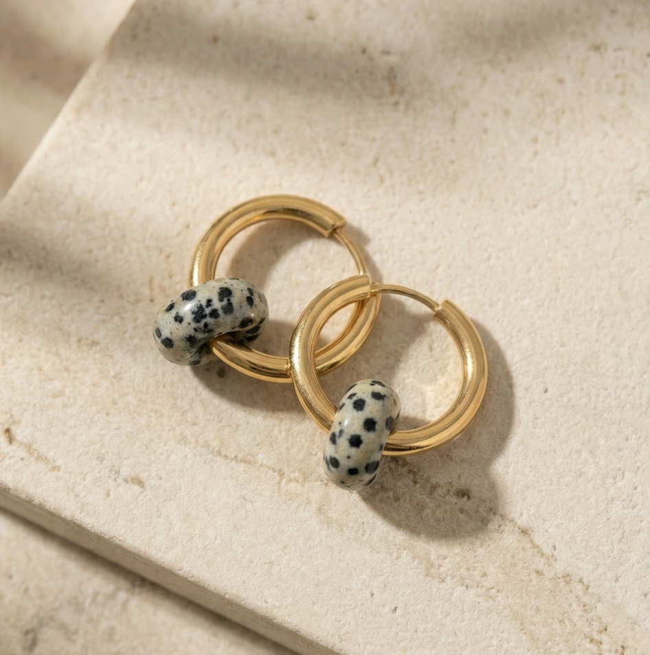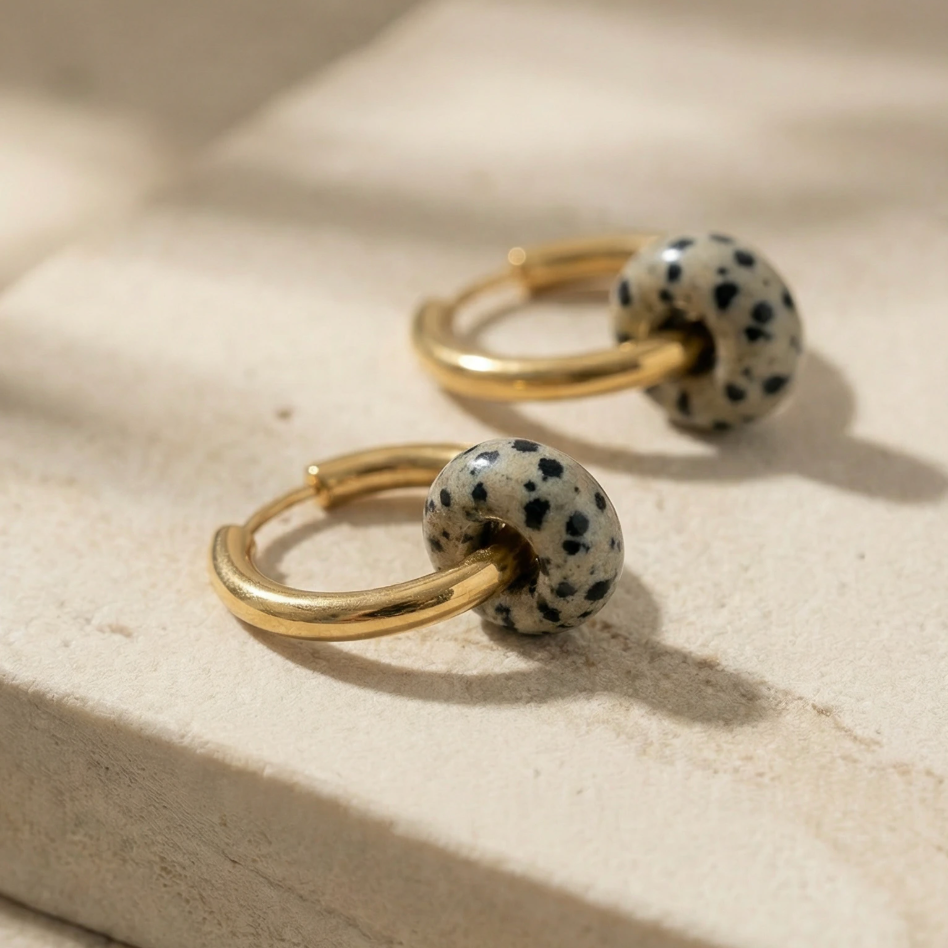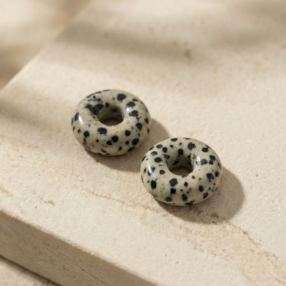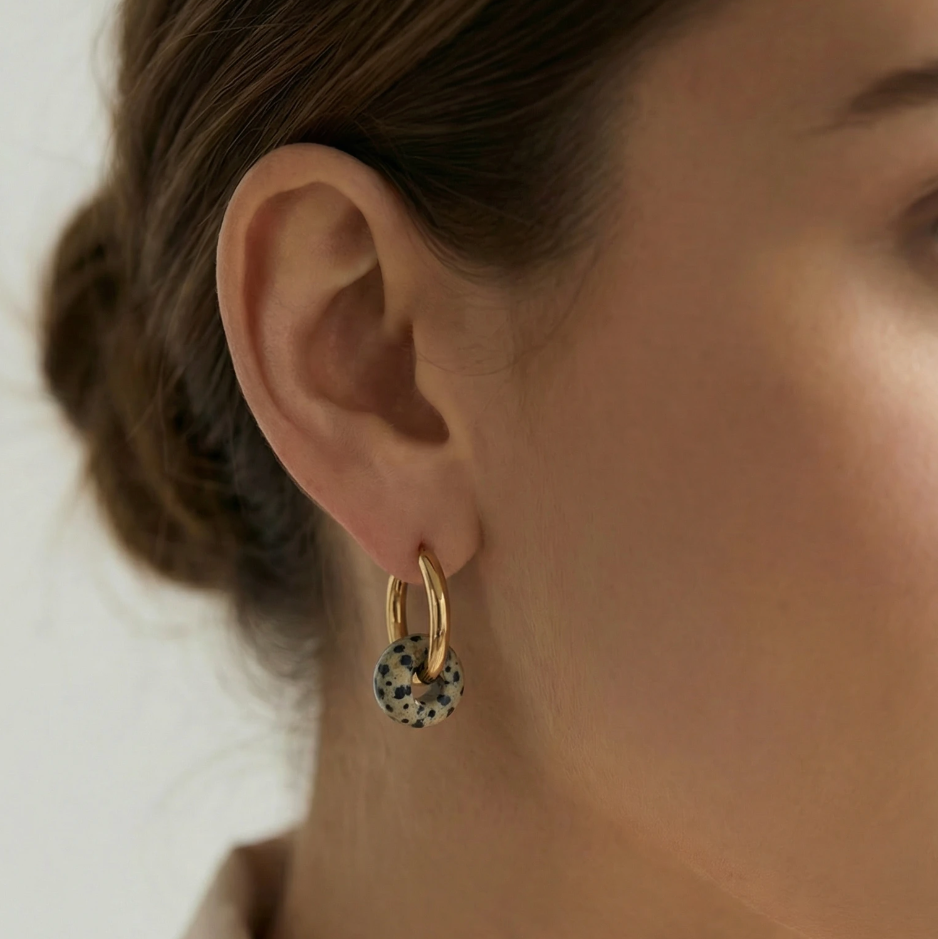LETGOFLOW Dalmatiner Jaspis Creolen BIG DONUT sind stilvolle Ohrringe mit wunderschönen Anhängern aus Dalmatiner Jaspis.