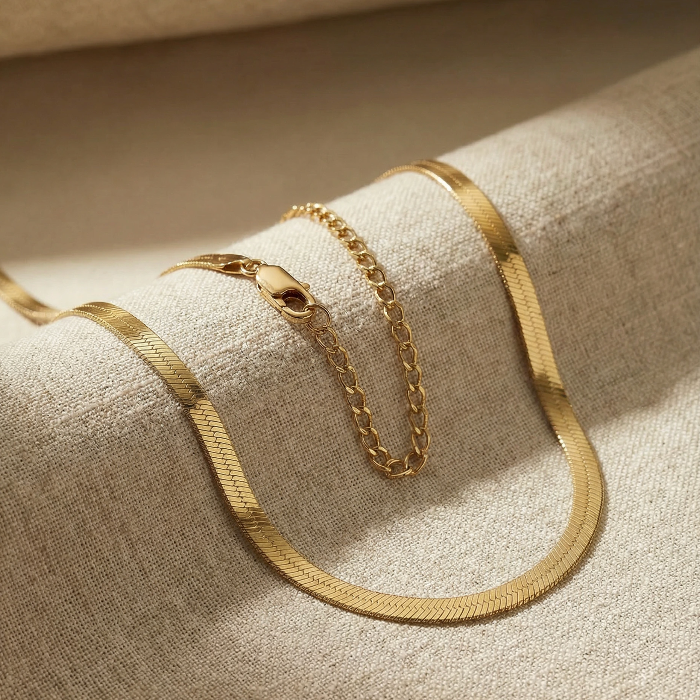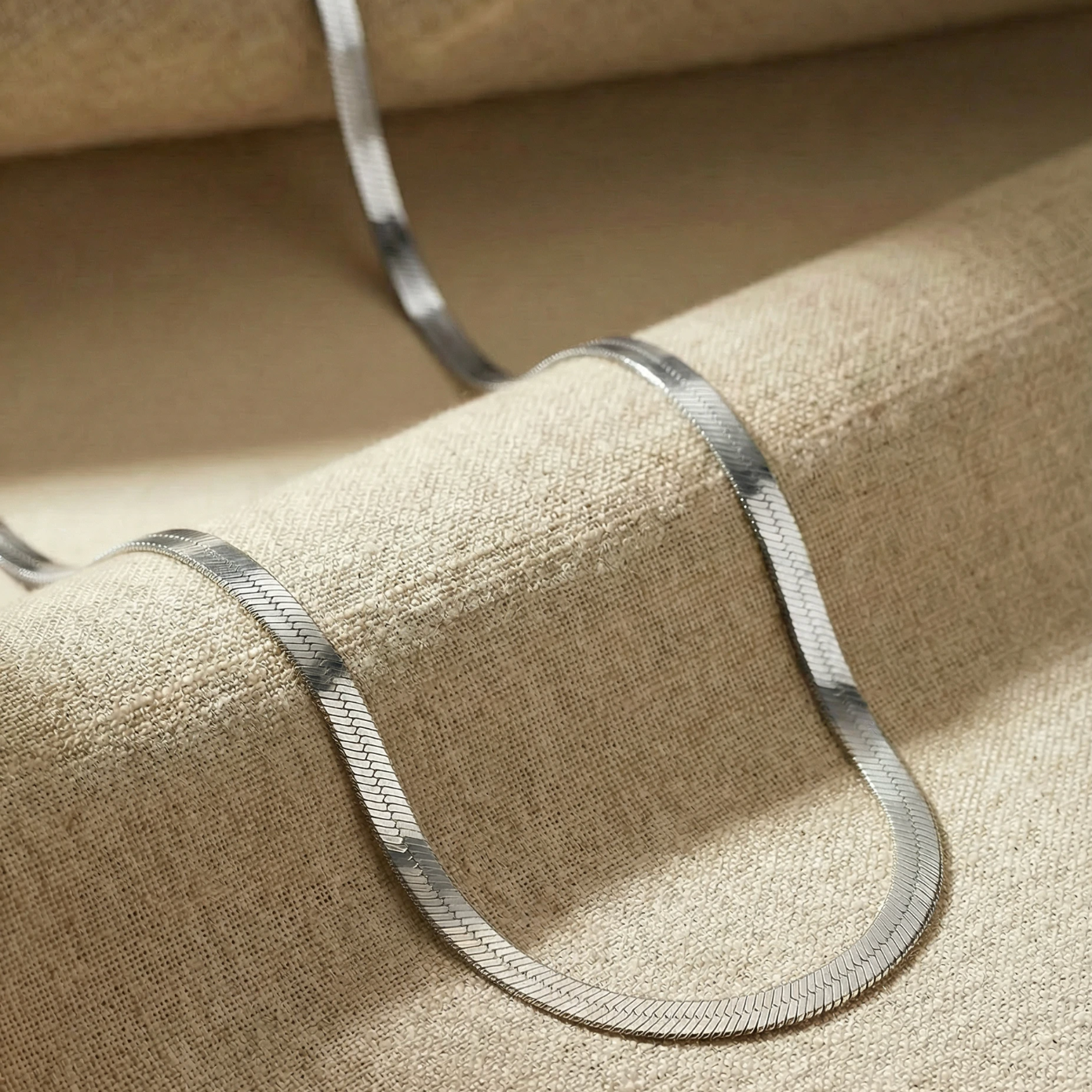 LETGOFLOW Snake Chain Halskette FLAT ist eine klassische Halskette in Snake Chain Stil.