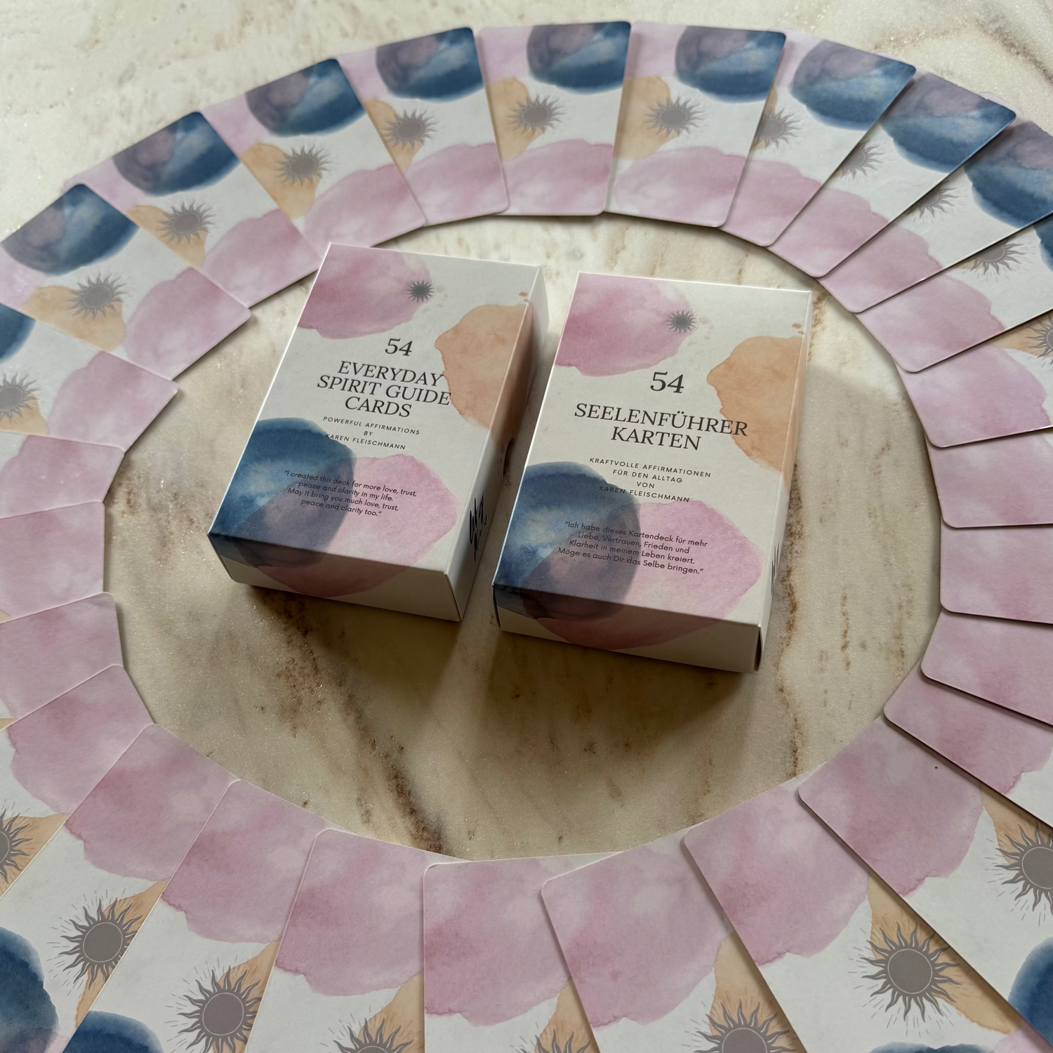 "Liebe Karen, Deine Karten sind einmalig! Ich benütze sie täglich und bei den Behandlungen unterstützen sie die Patienten sehr. Gerade habe ich wieder mit einer Klientin eine super Klärung erhalten! Ich werde ein Set nur für die KlientInnen kaufen, und eines nur für mich behalten, wegen der Energie.
